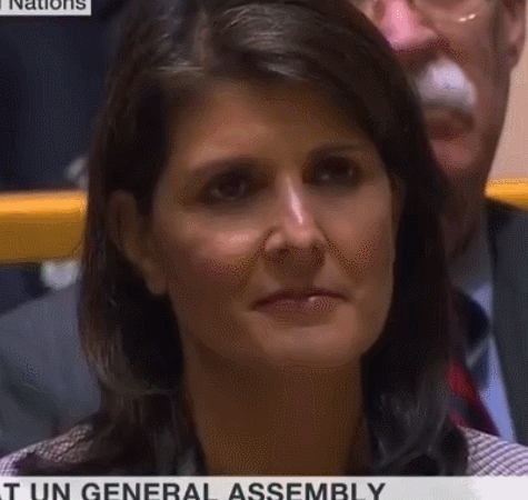 视频中,最支持特朗普还要数他们:副总统彭斯和美驻联大使黑莉则在下面不断点头微笑。