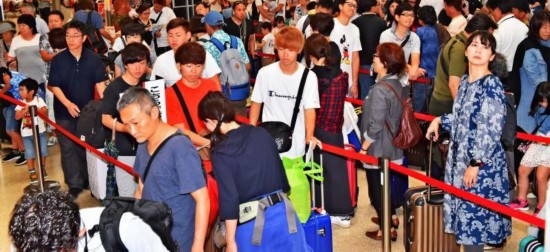 目前台风“潭美”移动较慢,其影响可能会持续较长时间。受台风“潭美”影响,截至当地时间29日上午8时30分,在冲绳县内有73460户停电;在冲绳县那霸机场起降的飞机在29日大面积停航,那霸机场内滞留大量旅客。冲绳气象台呼吁民众警戒暴风、巨浪、暴雨、泥石流、低地浸水、河流泛滥等灾害。(央视记者 何欣蕾)