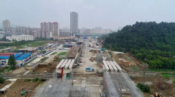近日,隧道南区、北区U形槽已基本施工完毕,高架段在实施现浇梁及主体结构施工。目前,主线桥连续梁已浇筑完成,正在桥面附属施工阶段。