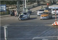 近日,在睢宁县天虹大道与中央大街路口上演惊险一幕,一辆银灰色轿车顶着警辅队员狂奔近二百米,幸好在转弯时被迫停了下来。路口的监控清楚的记录下当时的惊险画面。