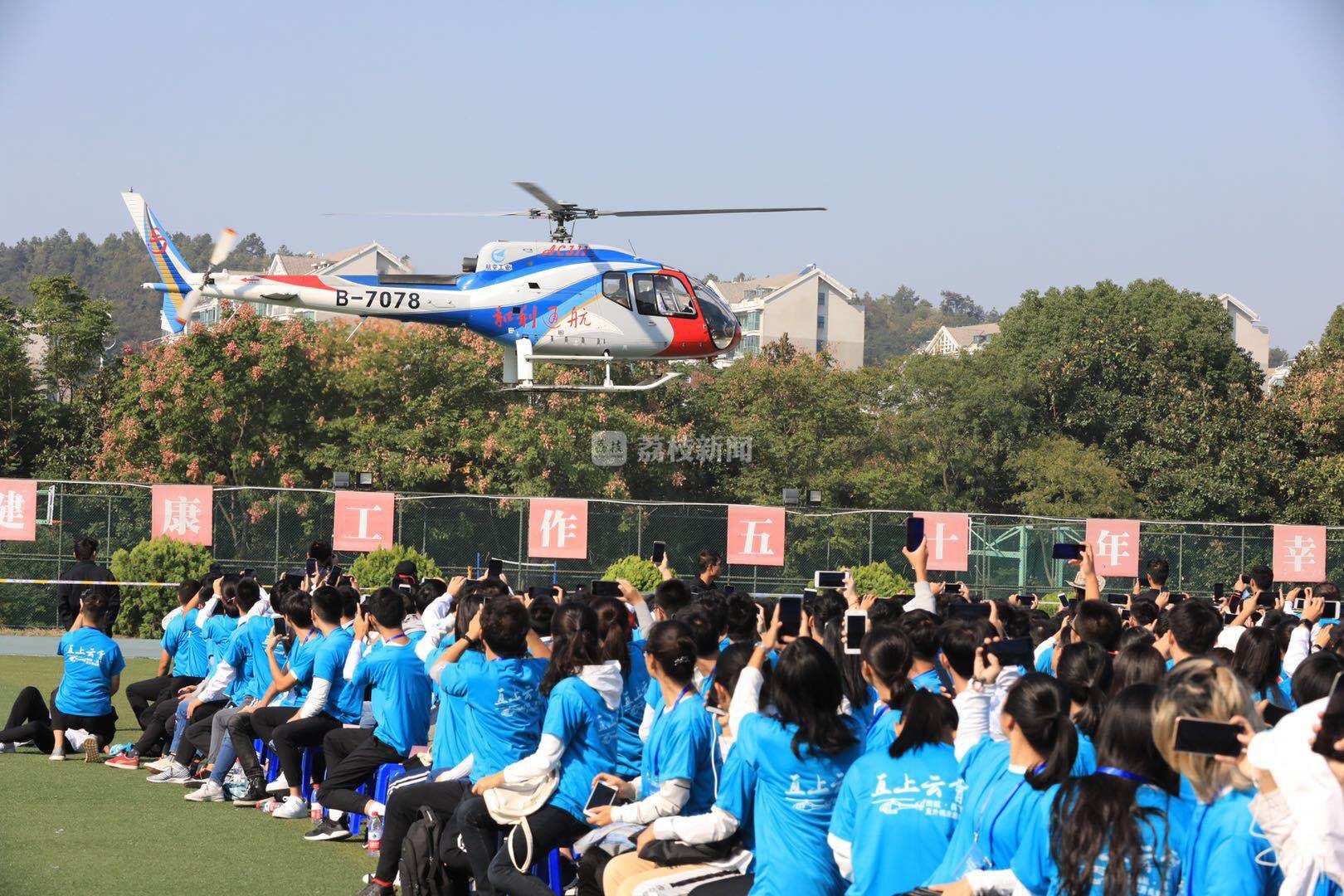我苏网讯(记者/王晟) “看,直升机要起飞啦!”南京航空航天大学将军路校区体育场上,原本沸腾的人群突然安静下来,静静地观看眼前难得的场面。