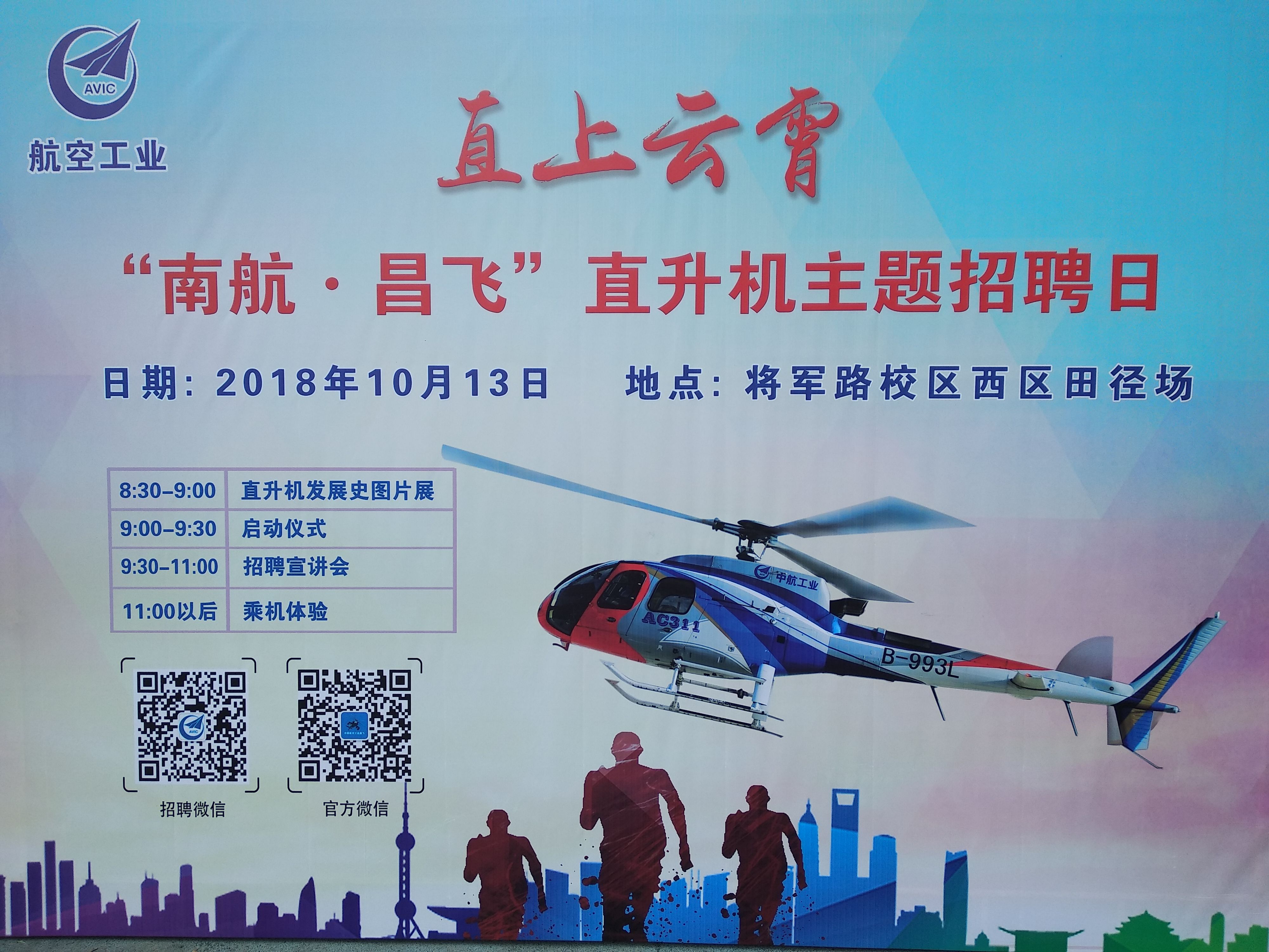派直升机进校园,宣传企业形象,广揽航空专业人才——这是航空工业昌飞公司和南京航空航天大学,共同策划的一场毕业生招聘会。