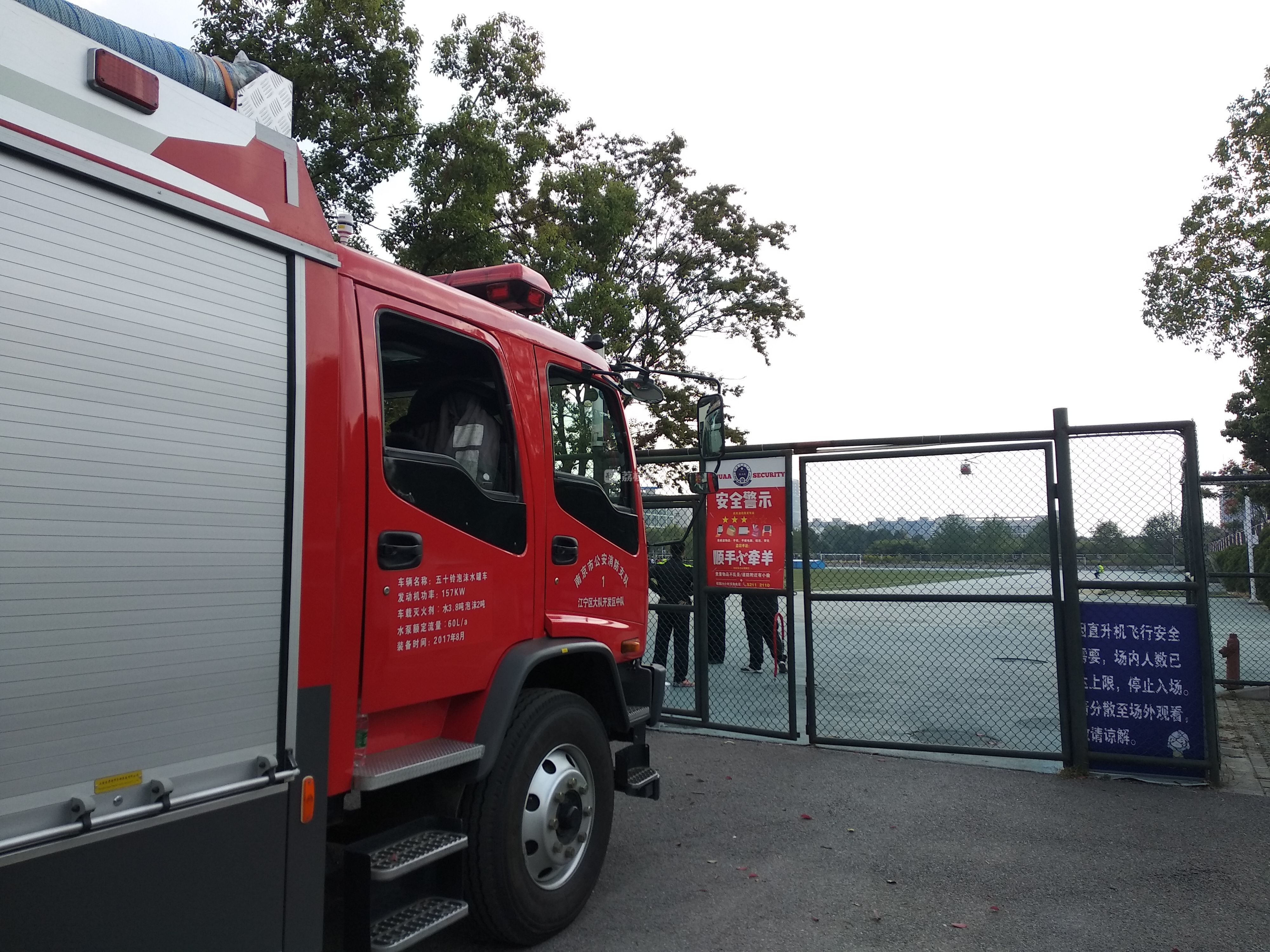 根据民航相关安全规定,消防车就在临时起降场外待命