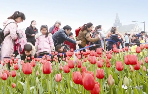 荷兰花海,4A级景区,国内种植郁金香面积最大、种类最多、形态最美、业态最全的中国郁金香第一花海,富民效应不断扩大,已带动周边8个村2000多户农民从事花卉相关工作,为农业结构调整打开了一片新天地。