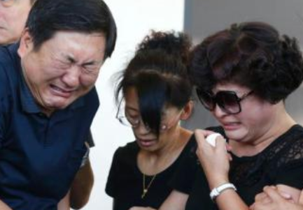 当地时间2014年7月31日,美国加州阿罕布拉,在南加州大学遇袭身亡的中国留学生纪欣然的父母在停尸房看儿子遗体之后,痛哭流涕。