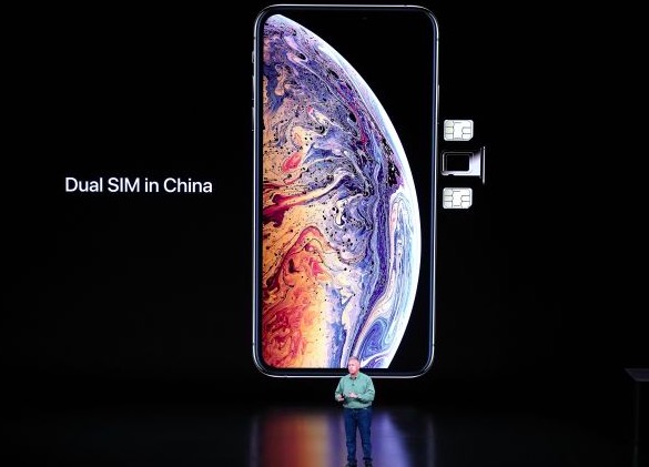苹果公司全球市场营销高级副总裁菲利普·席勒介绍新推出的双卡功能