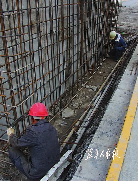 在世纪大道与玉兰路交叉口的7#沉井工地上,工人们正在操作注浆机,7#沉井的制作已基本结束,为防止沉井对四周路面产生影响,工人们要通过注浆的方式来加固结构,保护路面,防止塌陷。不远处的8#沉井工地上,工人束长清与工友们正在忙着捆扎钢筋,虽天气寒冷,大家没有丝毫退缩,干得欢快。束长清说:“冷一点没什么,我们干活的做一会儿就浑身暖和了。”