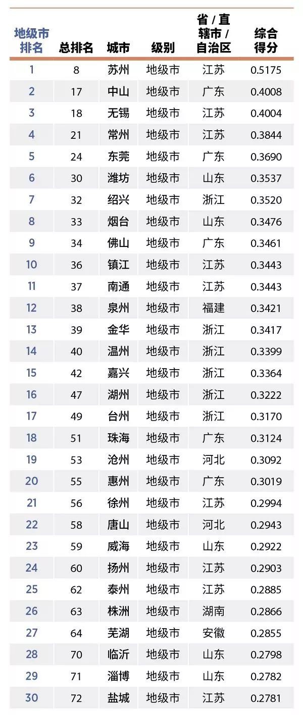 近日,福布斯中国发布“中国大陆最佳地级城市30强”。作为“2018中国大陆最佳商业城市”的子榜单之一,地级市榜单罗列了榜单的地级市前30名,给读者提供更为具象的认知。