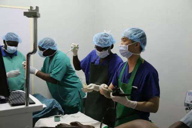 在援赞期间,军医组队员常常会遇到紧急情况。“一枚硬币卡在食管中,上不去下不来。”一次,普外科主治医师张超杰接到一位约5岁的小女孩,患儿吞了一枚硬币,两三天都没有排出。由于当地医疗条件差,没有儿童专用胃镜,只能等成人胃镜。当时,张超杰想到之前曾在国外网站上学到的一种取食管异物的方法,他巧妙用一根导尿管伸入患儿食管,利用气囊将食管撑开,然后在拉出气囊的同时将硬币顺利带了出来。整个过程很快,患儿基本没有遭受到痛苦。“时间长了硬币会腐蚀到食管造成穿孔,越快取出越好。”张超杰说,这还是他第一次用学到的导尿管方法取异物,效果很好。
