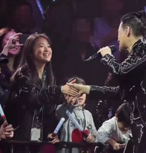 当张学友唱起《她来听我的演唱会》时,走到女儿面前轻轻握起了女儿的手。