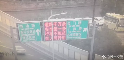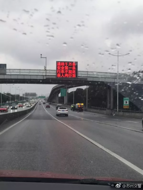原来,图中是苏州高架上的情报板,写着: