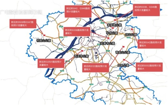 G42绕城高速清明节期间,早上6:00-下午13:00,车流量增多。