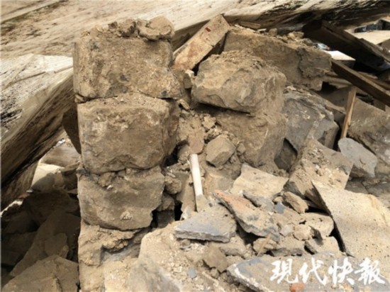 根据张先生的指引,记者来到了此处发现,路边一带正在拆迁,居民也已经搬走了。发现城砖的这一家已经拆房结束,现场拆迁工人告诉记者,他们在拆迁过程中就发现了这些城砖。记者看到,堆放在现场的砖中,以青灰色的砖为主,粗略估算下来大概有百十来块,而红砖的数量则相对较少。