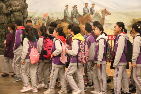 宿迁市钟吾国际初中、宿迁市实验学校、宿迁市苏州外国语学校、宿迁市树人学校、宿迁学院附属学校、宿豫张家港实验小学及各幼儿园等大中小学师生高举队旗,排着整齐的队伍来到彭雪枫纪念馆瞻仰彭雪枫将军。
