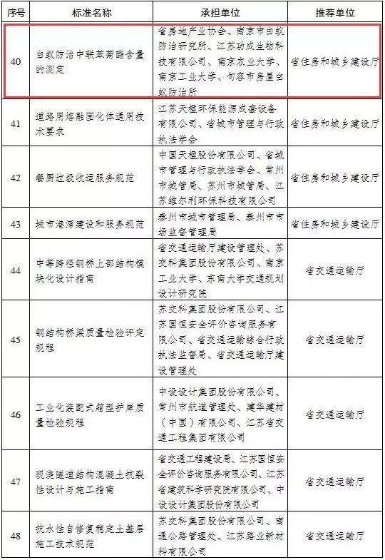 此外,江苏农林职业技术学院、镇江市公路管理处、句容市房屋白蚁防治所等单位参与起草的3项标准也获准立项。