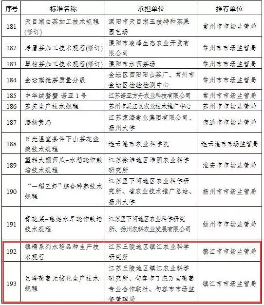 5月6日,小编从市市场监管局获悉,省市场监督管理局近日下达了2019年度第一批江苏省地方标准项目计划,经过市市场监管局积极组织推荐,江苏丘陵地区镇江农业科学研究所主导起草的《镇糯系列水稻品种生产技术规程》、《巨峰葡萄无核化生产技术规程》等两项标准成功获批。