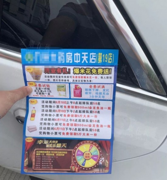 经进一步调查发现,该药店刚刚开张,为招揽生意在该小区车库门以及居民车辆上发放广告,居民们不胜其烦,小区物业及清洁人员也难以清理。