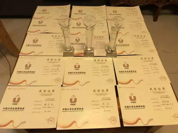▲围棋部近年来获得的部分奖状和奖杯