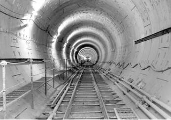 记者看到,铺装管片后的洞壁表面十分平整光滑,管片由水泥预制管片构成,每片1米多宽。几名工人正在像打游戏一样操纵着拼装机,将巨大的管片贴附到洞壁上,再由其他工人将管片用弧形螺栓穿起固定,就这样,隧道在工人手中一环一环向前延伸。