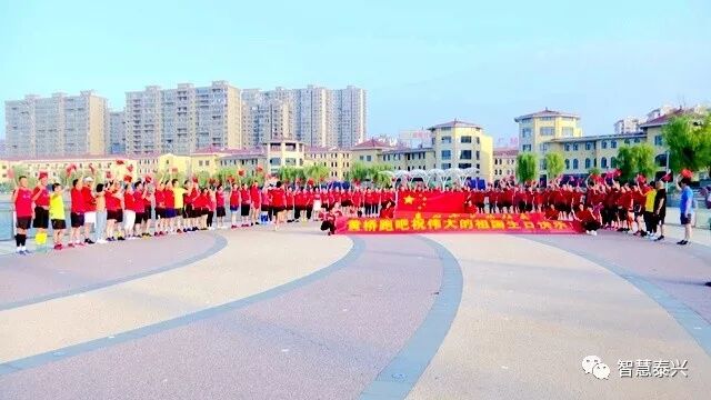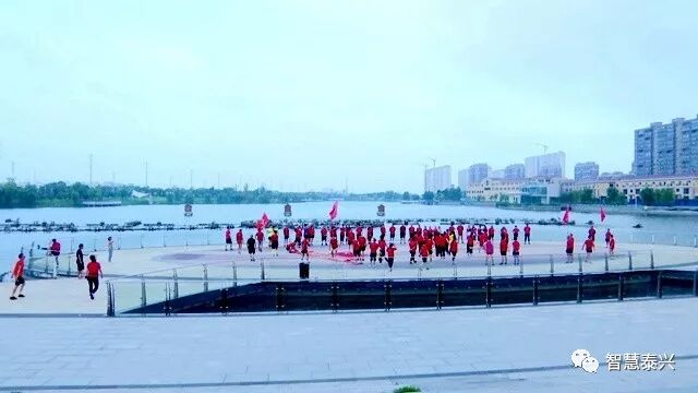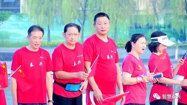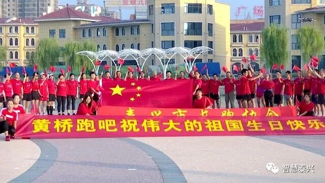 早晨6点,长跑爱好者们早早来到黄桥人工湖,围成半圆,每人手持一面小红旗,与国旗一起合影,表达了对祖国母亲繁荣昌盛、团结友爱一家亲的真诚祝福。