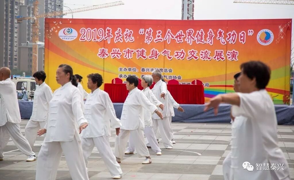 伴随着轻柔的背景音乐, 参演运动员们表演了八段锦、易筋经、五禽戏、六字诀等国家体育总局推广的缩短版功法, 动作整齐划一、舒展大方,颇为壮观。本次活动由市体育总会主办,市健身气功协会承办。