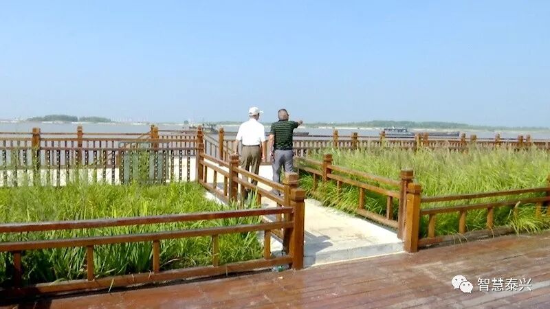 在虹桥镇长江生态廊道先导段,不少市民正三三两两漫步于九曲回廊,欣赏江畔美景。
