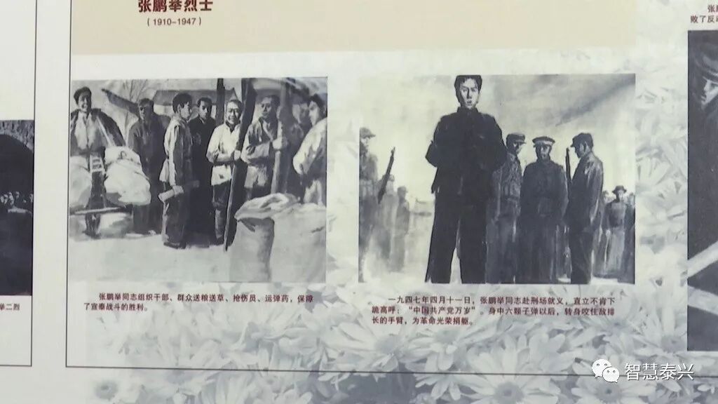 最后,敌人的子弹射进了张鹏举的胸膛。张鹏举用坚贞不屈的信念,挺起了泰兴儿女为解放事业奋斗的脊梁。