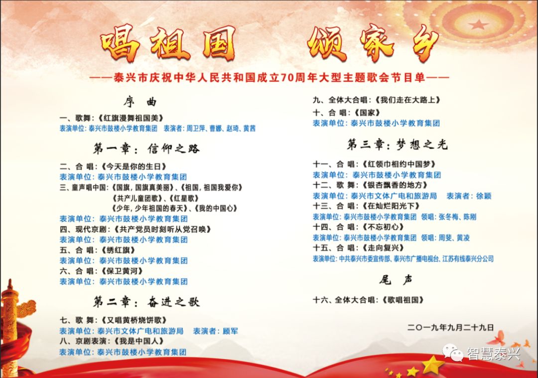 泰兴市庆祝中华人民共和国成立70周年大型广场歌会