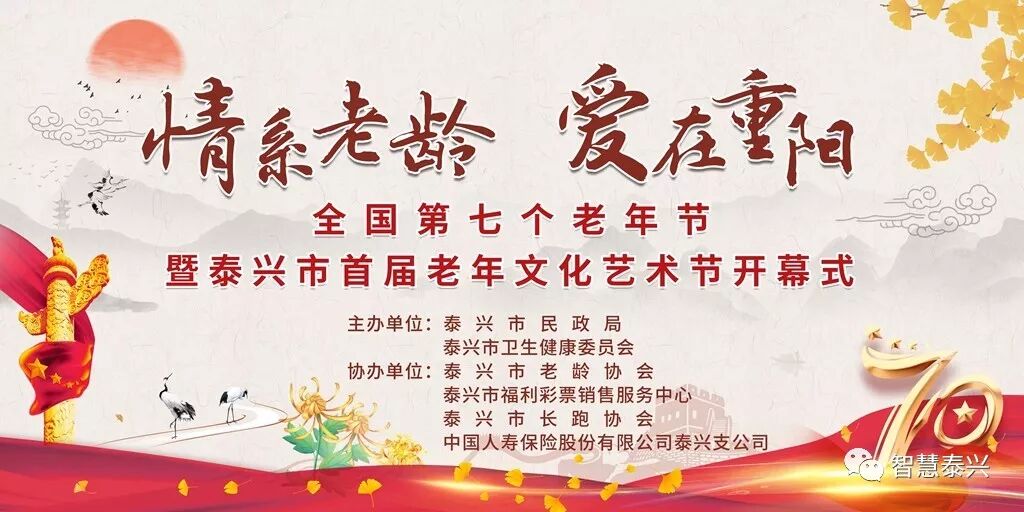 由市民政局主办的全国第七个老年节暨泰兴市首届老年文化艺术节将于9月29日下午2:30在市体育中心盛大开幕。