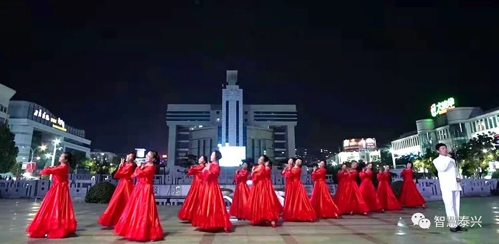 泰兴市满江红艺术团表演的舞蹈《花在雨中俏》,寓意伟大的祖国像一朵色彩艳丽的鲜花,在70年的风雨中历尽沧桑,百折不挠,茁壮成长。