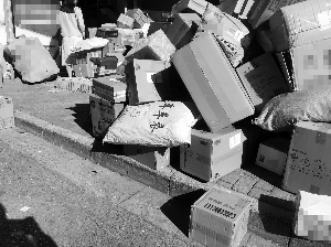 快递点前堆积的包裹