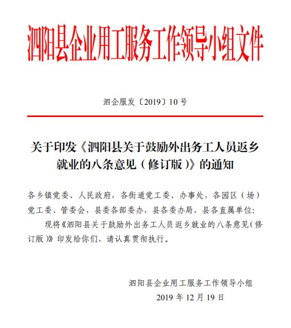 为进一步吸引在外务工人员返乡就业,有效解决企业用工问题,优化就业环境,日前,泗阳县对鼓励外出务工人员返乡就业八条意见进行修订。