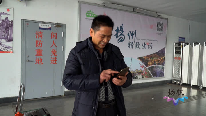 上午十点多,在外打工的高邮市民时明宏抵达扬州火车站,刚出站,他就迫不及待和女儿视频通话。为了第一时间回家,他从广州买了一张站票就踏上了开往扬州的火车。一个人、一个包、一只桶,25个小时,一夜未眠。他说,不管以什么方式,哪怕站回家、挤回家,都阻挡不住他回家的步伐。
