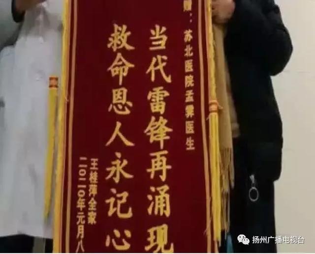 经过一个月的治疗,王阿姨的身体康复了。为了感谢小孟这一善举,王阿姨和家人特地给小孟送上了一面锦旗,上面写道“当代雷锋再涌现,救命恩人永记心”!
