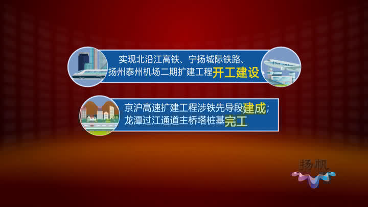 围绕做强通道、做大路网、做优枢纽的要求,今年扬州市将进一步加快推进高速铁路、高速公路等建设。实现北沿江高铁、宁扬城际铁路、扬州泰州机场二期扩建工程开工建设;京沪高速扩建工程涉铁先导段建成;龙潭过江通道主桥塔桩基完工。建成扬州东、宝应、高邮等3座综合客运枢纽和界首高铁站,确保与连淮扬镇高铁同步开通运营。