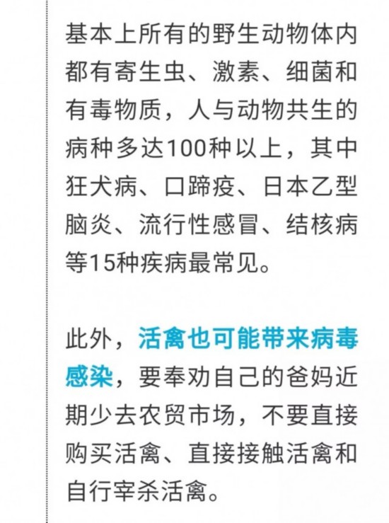 不要再吃野味,避免接触活禽。