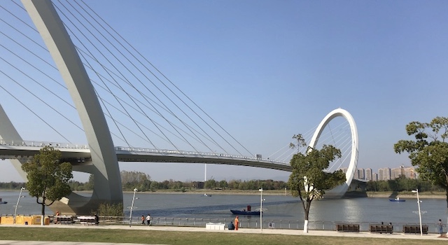 在南京长江大桥上游13公里处,一座新“巨龙”横跨两岸,这正是预计年底通车的南京长江五桥。