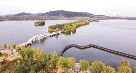 贾汪区对采煤塌陷区实施改造,是通过“基本农田整理、采煤塌陷地复垦、生态环境修复、湿地景观开发四位一体”的综合整治,对采煤塌陷破坏的土壤进行重构,恢复土地生态调节功能。特别是潘安湖改造工程“变废为宝、化腐朽为神奇”,将百年煤城变成了拥有7000亩开阔水面和4000亩湿地景观的生态公园,完成了从“一城煤灰半城土”到“一城青山半城湖”的转变,成为全国采煤塌陷地治理、资源枯竭型城市生态环境修复再造的样板与典范。