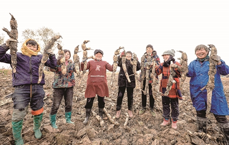 12月1日,铜山区房村镇李庄村芙蓉园内,十几名工人正挥舞着铁锹,热火朝天的挖白莲藕。目前正值莲藕收获季,全镇万亩藕田处处可见丰收的喜悦景象。据了解,今年莲藕亩产量约3000—4000斤,地头收购价每斤约2元,广受市场欢迎。近年来,房村镇因地制宜,依托黄河故道的天然优势,发展赏荷、莲蓬采摘、农家乐为一体的生态高效农业,成为农民就业、增收的重要支柱。