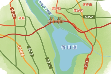 据徐州沛县交通局副局长岳峰介绍,“十四五”期间,微山县、沛县将协同合作,加快实施G518微山湖跨湖大桥工程,突破微山湖省际交通瓶颈。聚力推动枣微沛丰高速公路项目落地实施,连接济徐高速、京台高速,打通微山湖南部跨湖高速通道。实施建设微山青山路东延(通高铁站)工程、枣庄光明大道西延(通微山县城)工程,促进薛城区与微山县交通全面互通。加快推进湖西航道升级改造工程,2021年完成下级湖段改造提升工程,力争2021年开工建设湖西航道上级湖段升级改造工程,全面提升微山湖区水路通航能力。