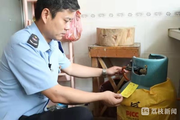 “阿姨,您的煤气罐连接软管已经开裂了,因为这种管子是生胶做的,要尽快更换,以免漏气。这是《夏季安全手册》,请您仔细阅读。夏天天热,安全用电用气更重要。”7月25日,在徐州市铜山区郑集镇阳光家园沈兴国老人家中,安维应急有限公司工作人员刘森一边检查煤气罐一边向老人介绍道。