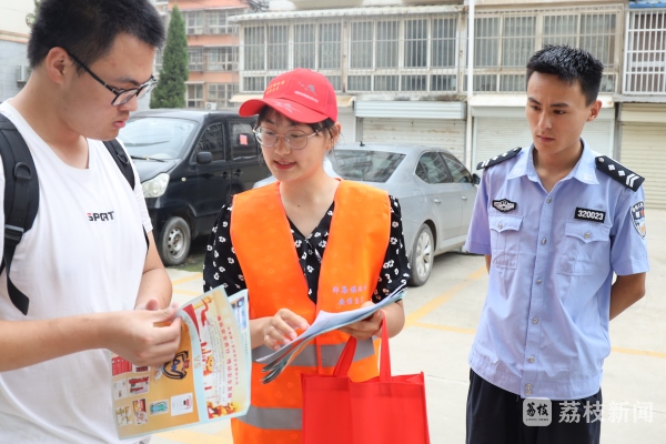 “我们今天上午走访的阳光家园,上午120户,下午88户,我们都是按单元走访,从一楼爬到六楼,有点累,能够提高大家的安全意识,很充实,很有成就感。”大学生志愿者袁梓仪拎着宣传袋正从阳光家园走出来,满脸汗水,衣服被汗水浸湿,贴在身上,她顾不得多说,又走向另一个单元。