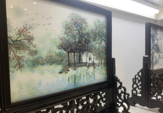 走进江苏凯利绣品有限公司展厅,仿若走进五彩针线绣筑的缤纷世界:风景雅致的水乡、娇艳欲滴的花卉、灵动可爱的小鹿、青春活力的女孩……一花一木皆为线,一人一景皆是画。在这里,传统刺绣与时尚艺术相结合,古典元素、时尚潮流巧妙地融入各种日常用品。