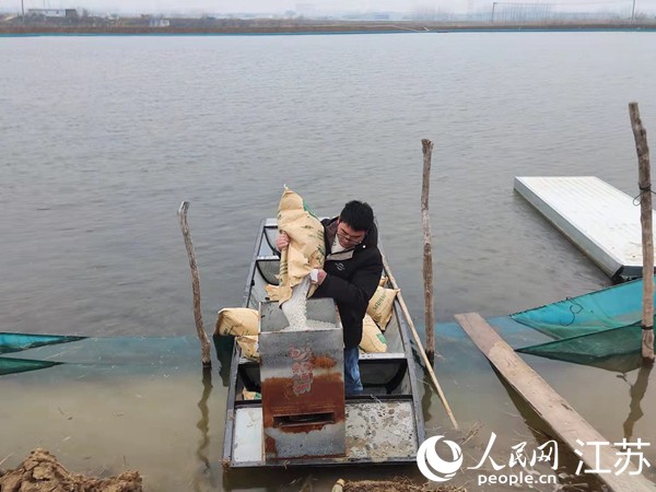 这几年养殖越做越红火,家住淮安市洪泽区老子山镇新滩村的刘俊胜在临近的官滩镇承包了216亩内塘。眼下,塘里的螃蟹已销售一空,他和父母正忙着为塘消毒,为新苗投放做准备。