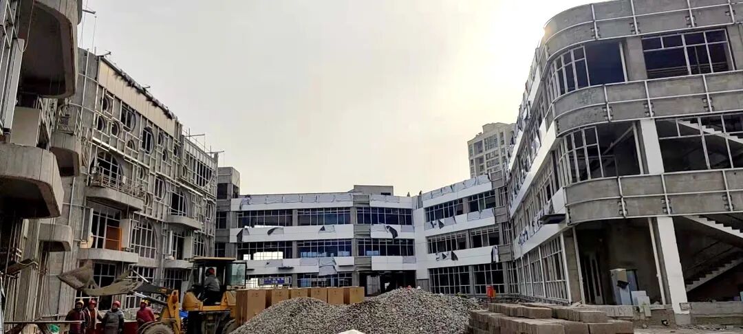 项目位于济川路与334省道交界处,目前南部实验楼、办公楼、报告厅已进入扫尾阶段;北部教学楼、图书馆已进入装饰施工阶段。