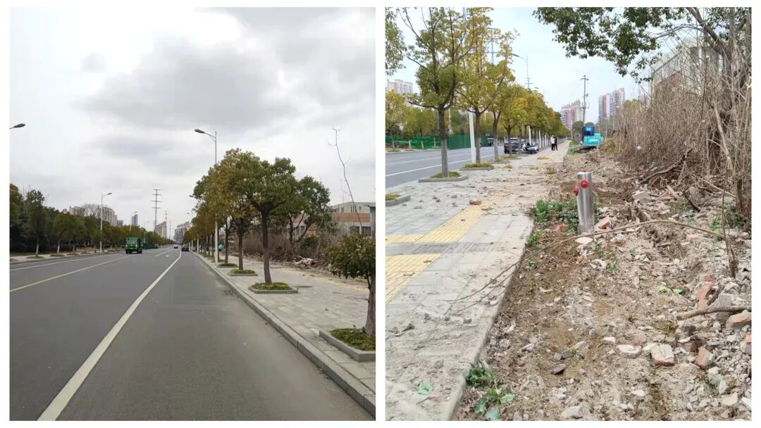 正在清理中分带道路施工遗留的建筑垃圾,即将实施绿化建设。