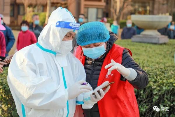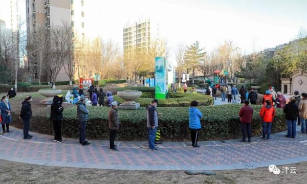 在滨海新区杭州道街道,工作人员和志愿者们一起硬刚这场疫情的“倒春寒”。天还没亮,他们就开始忙碌起来,布置场地、现场维护秩序、疏导群众,照顾老幼居民……“我们按照距离远近和居民人数制成表格,发布到居民微信群,只要按照拟定时间下楼,居民很快就能完成采样。”新园里社区党委书记罗丽健说。杭州道街商户集中,连日来,他们还对辖区内上千家商户进行全覆盖的疫情防控检查,目前,已经检查点位近5200个。