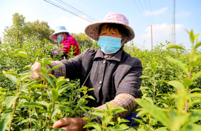 “采茶啰……”3月23日,南京市江宁区江宁街道牌坊村黄龙岘茶农陈有宝带着8名外地采茶工来到自家40亩茶园采摘新茶。8名采茶工均来自宿迁,在经过旅居史排查、落地快检及“3+11”等管理措施后,老陈才被获准带着他们上山采茶。随着这声响亮的吆喝,黄龙岘采茶季正式拉开序幕。