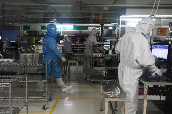在赣州市同兴达电子科技有限公司,工人正在生产电子元件(2月17日摄)。新华社记者万象摄