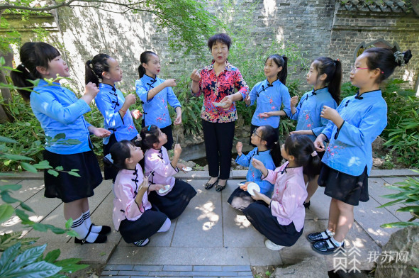“吃板浦,穿海州,板浦人最好客,海味山珍花样多。康熙贡醋‘汪恕有’,香醉十里有汤沟。”5月28日,在连云港市苏光中心小学内,“海州五大宫调”传统曲目《板浦四季美食多》正在被学生们演唱。